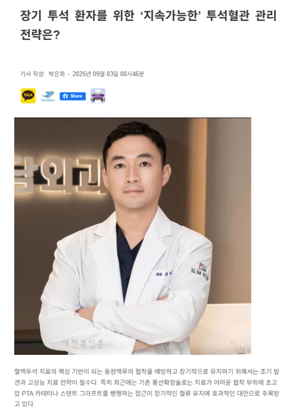 “동정맥루는 단순히 투석을 위한 혈관이 아니라, 환자 삶을 지탱하는 중요한 치료 수단”이라며